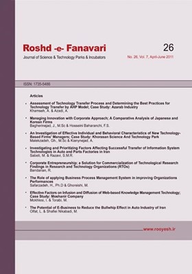 الکلمات المفتاحية: مدیریت دانش, سیستم¬های اطلاعاتی تحت وب, انتقال تکنولوژی, نوآوری تکنولوژی, انتشار, گسترش,
