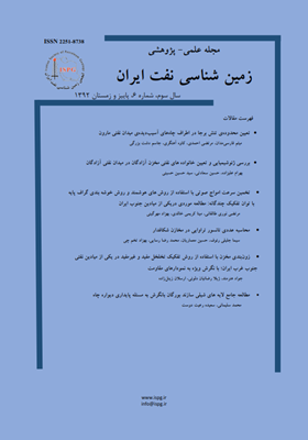 چکیده این مطالعه قصد دارد تا میان لایه های شیلی سازند بورگان در این میدان نفتی را از دیدگاه پایداری دیواره چاه شناسایی کند. در روند انجام این مطالعه مجموعه ای از اطلاعات و نمونه ها شامل نمونه های مغزه از میدان تهیه شده و یک مطالعه موردی با جزییات ارائه می شود. برای تعیین کانی شناسی نمونه ها آزمایشات پراش اشعه ایکس روی نمونه های توده ای انجام گرفته است. كاني هاي رسي نمونه ها استخراج شده و به روش هاي نرمال، حرارتي و اشباع اتيلني آماده سازي شده و مجدداً آزمایشات پراش اشعه ایکس انجام گرفتند. مرحله بعد مطالعه با ميكروسكوپ الكتروني و اندازه گیری ظرفيت تعويض کاتیونی نمونه ها می باشد. با طیف سنجی پرتو گاما و استفاده از كراس پلات نوع كانيهاي رسي نمونه ها مشخص گردیدند. كوارتز و کانی های رسی كائولينيت و ايليت فراوانترين كاني هاي موجود در نمونه ها محسوب می شوند. سازند شیلی مورد مطالعه تمايل چنداني به آبگيري و تورم از خود نشان نمی دهد و مشکل آماس در تماس با سیالات حفاری پایه آبی را ندارد. پایین بودن مقادیر ظرفیت تبادل کاتیونی این مسئله را تایید می کند. تصاویر میکروسکوپ الکترونی نیز نفوذپذیری پایین سنگ را نمایش می دهد. می توان نمونه ها را جزء گروه شیل های ورقه ای و شكننده تقسیم بندی کرد که به هنگام حفاري ميتوانند منجر به شکست سازند در امتداد سطوح لایه بندی و ریزش دیواره چاه گردند. طراحی شیمیایی سیال حفاری در حل مشکل ناپایداری دیواره چاه در این سازند چندان موثر نخواهد بود و تنها ممانعت از نفوذ فشار و سیال حفاری با استفاده از مواد پرکننده می تواند پایداری را بهبود بخشد. مناسبترین روش در پایدارسازی دیواره چاه در این سازند استفاده از روش های مکانیک سنگی مانند انتخاب جهت و شیب مناسب چاه می باشد.