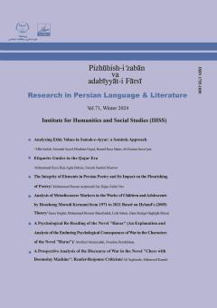قاسمی اصفهانی، نیکو و المیرا دادور (1402) «کاربست نظریه دریافت بر تحلیل مفهوم جنگ در رمان هرس»، فصلنامه علمی پژوهش در زبان و ادبیات فارسی، شماره 68، صص 127-151.