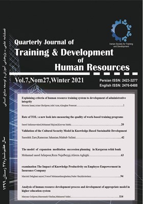 یزدان شناس مهدی ، شجاعی محمد حسین (1395) ، شناسایی و تبیین الگوی عوامل مؤثر بر بهره وری دانش؛ مطالعه ای درشعب بانک ملی استان قم ، مدیریت بهره وری سال دهم تابستان 1395 شماره 37